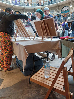 painting in progress at the workshop